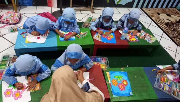 Mendorong kreativitas anak melalui berbagai aktivitas belajar yang interaktif dan menyenangkan.
